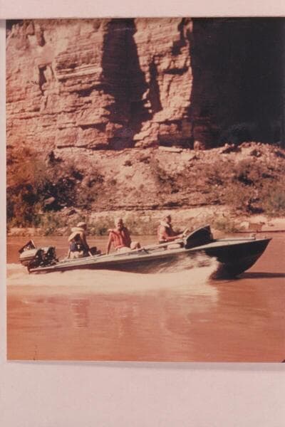 The "BOOTOO" cruising near Deer Creek; Masland, Eisaman and Marston at the wheel