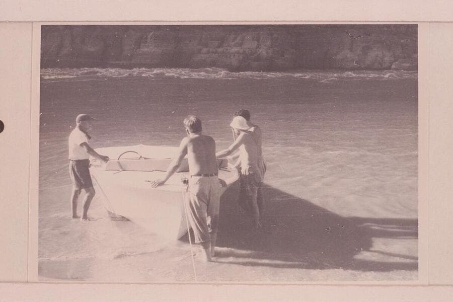 Rigging the "Kiwi" for the first run of Vulcan Rapid. Ed l'Anson; Jim Bechtel; Guy Mannering; Jon Hamilton