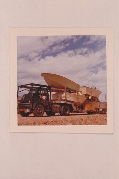 Unloading the 22-ft. Turbocraft in the first shipment to Mack Miller, Colorado River Turbocraft, Box 818, Boulder City, Nevada