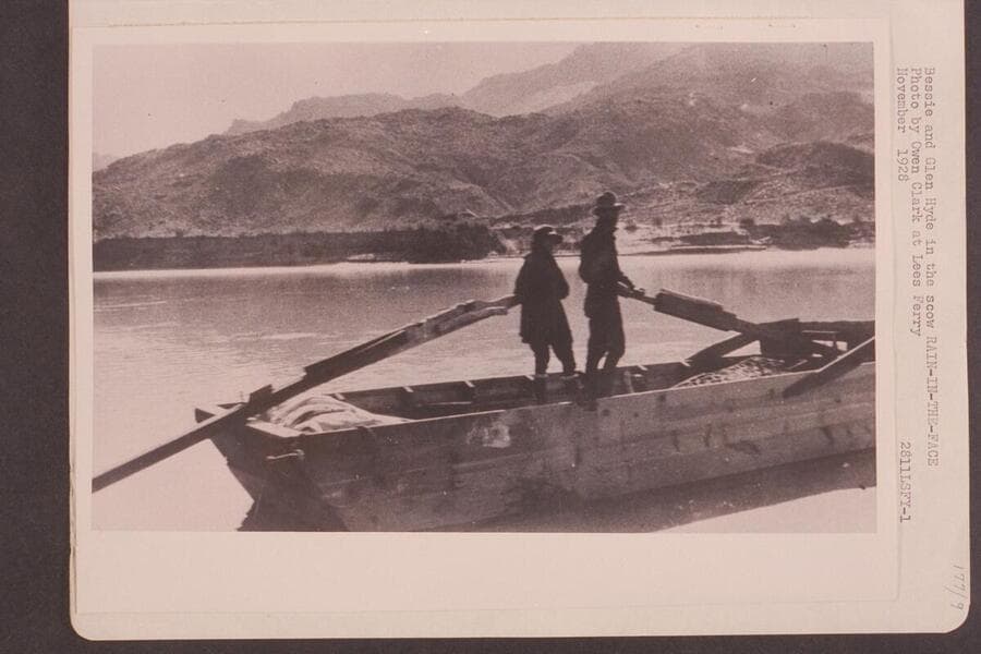 ![Bessie and Glen Hyde at Lees Ferry in the scow "Rain in the Face." [same image as V040/0065]](/_next/image?url=https%3A%2F%2Frail.huntington.org%2FIIIF3%2FImage%2F22APN4INYR5L%2Ffull%2F%5E360%2C%2F0%2Fdefault.jpg&w=750&q=75)