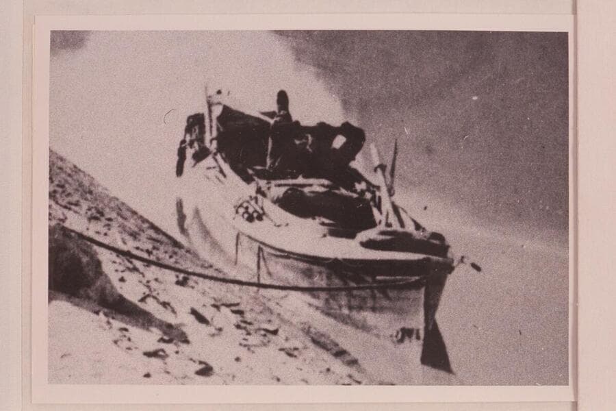 The launch and the Bradley moored at about Mile 35 after the swamping of the Stanton boat