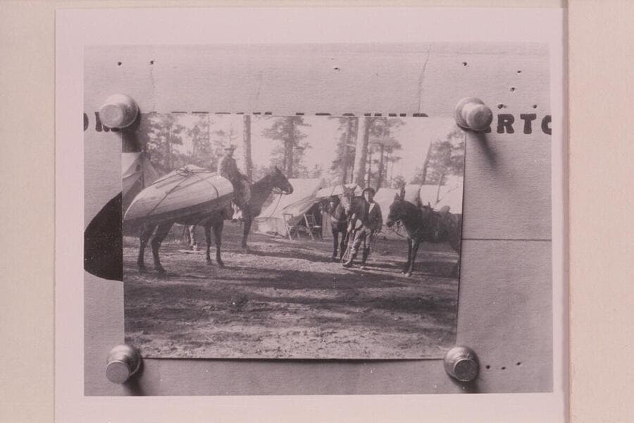 "Queen of the Canyon" on horseback. The skiff used by the USGS in the topographic survey of Grand Canyon National Park
