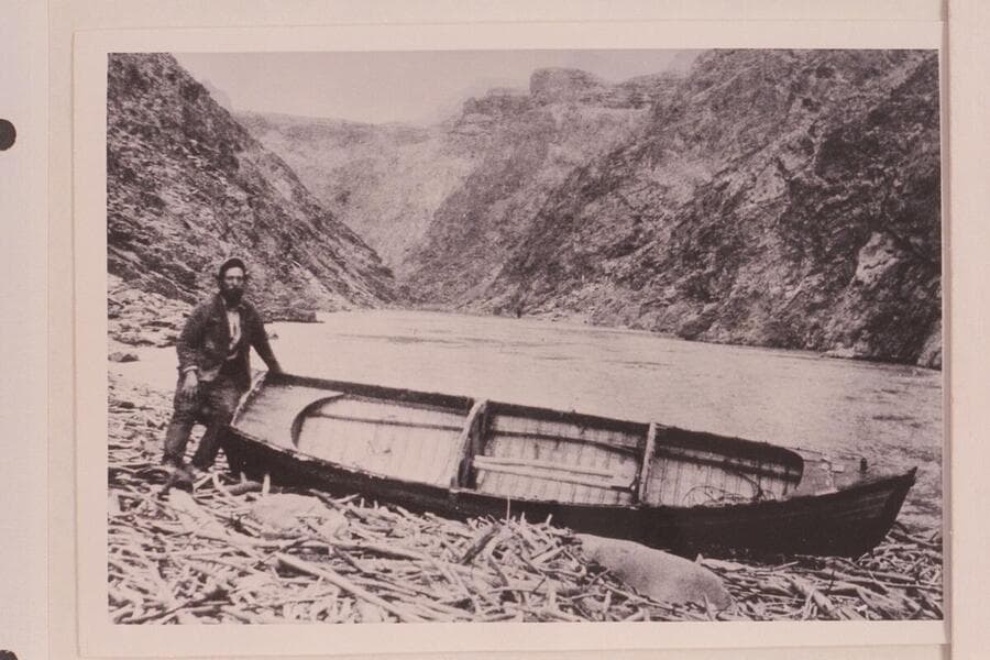 Charles Silver Russell at the oars of the "Utah." Pipe Creek. Grand Canyon