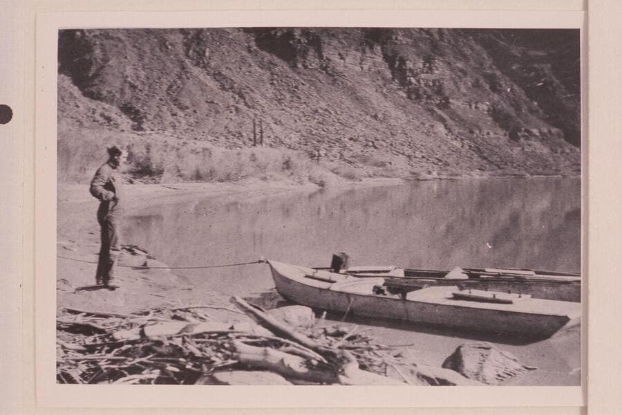Navajos debarking from Lees Ferry. Jerry Johnson in forebround