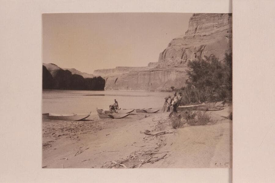 A fold-flat boat in use by the Rainbow Bridge-Monument Valley Expeditions on the San Juan and lower Glen Canyon; 1933-1938