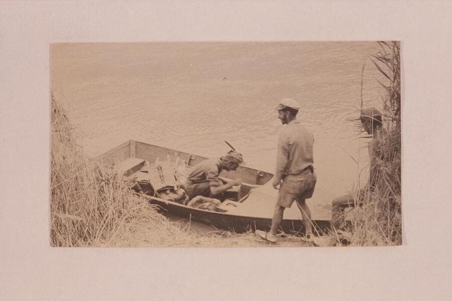 A fold-flat boat in use by the Rainbow Bridge-Monument Valley Expeditions on the San Juan and lower Glen Canyon; 1933-1938