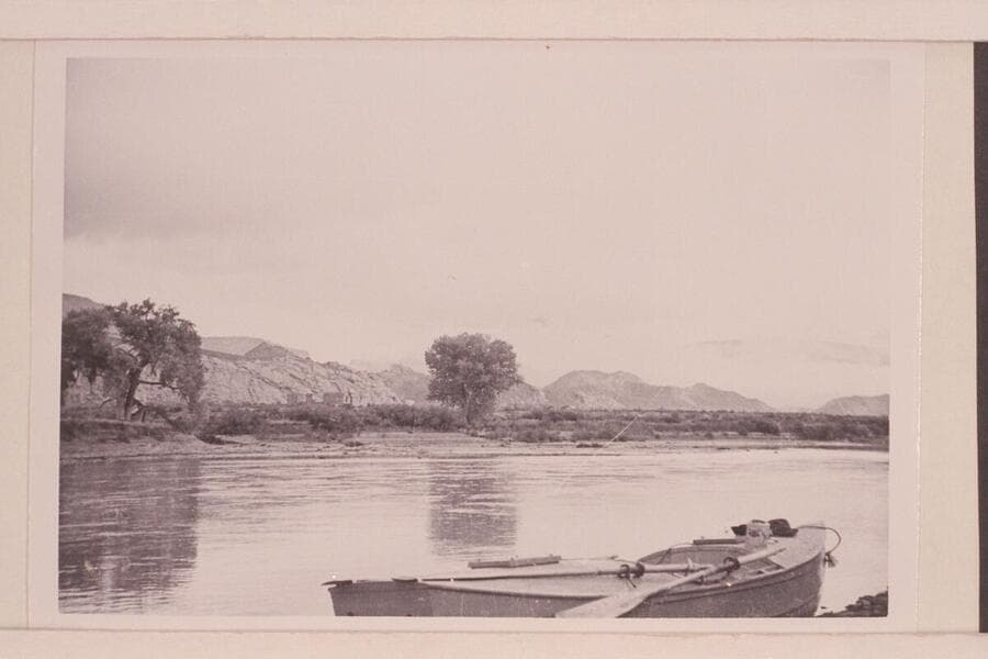Buzz Holmstrom's boat opposite the Dinosaur Quarry