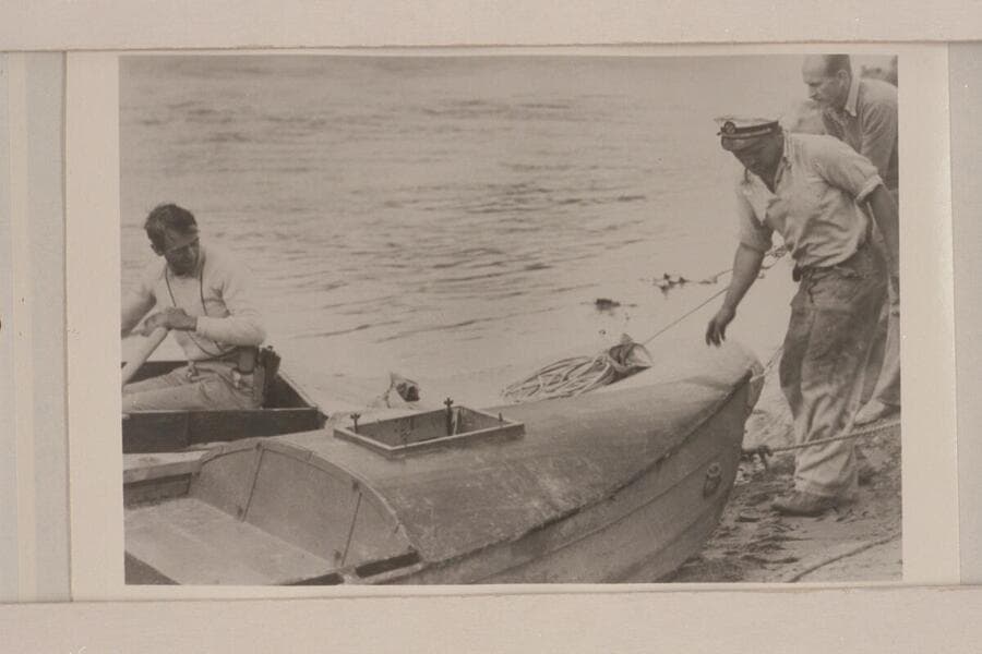 Left to right: Phil Lundstrom; Buzz Holmstrom; Amos Burg. Green River, Wyoming