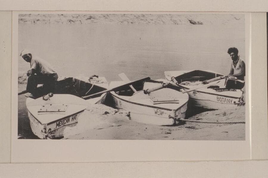 Nevills' first fleet of his type of Cataract boats pulled up on the shore