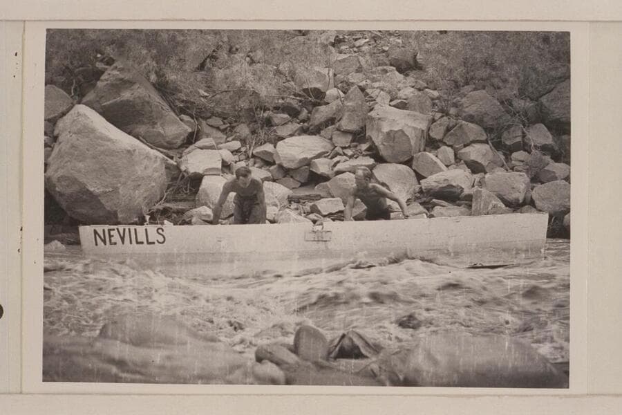 Nevills and Bell work the 16 foot punt down the shore; San Juan River