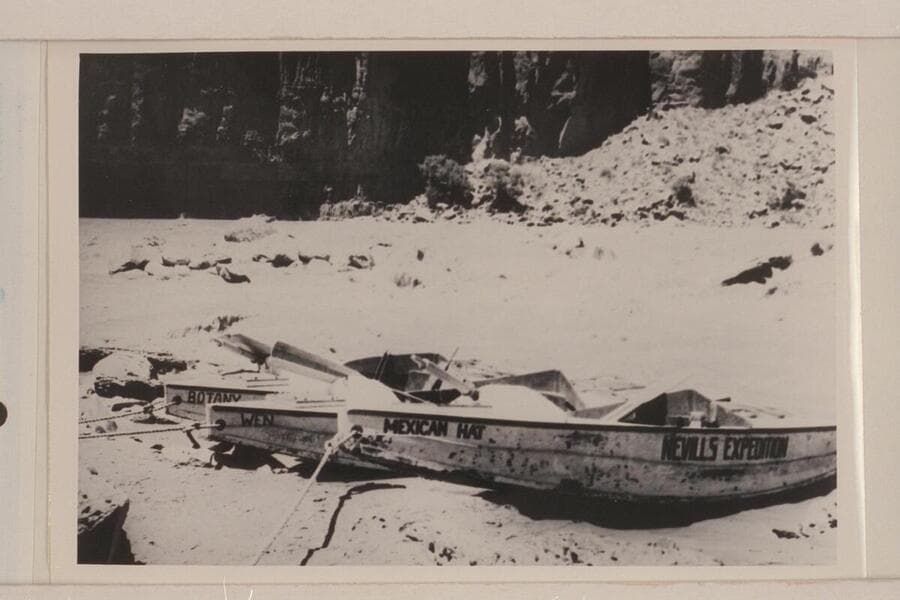 Nevills' first fleet of his type of Cataract boats pulled up on the shore