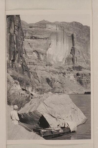A fold-flat boat in use by the Rainbow Bridge-Monument Valley Expeditions on the San Juan and lower Glen Canyon; 1933-1938