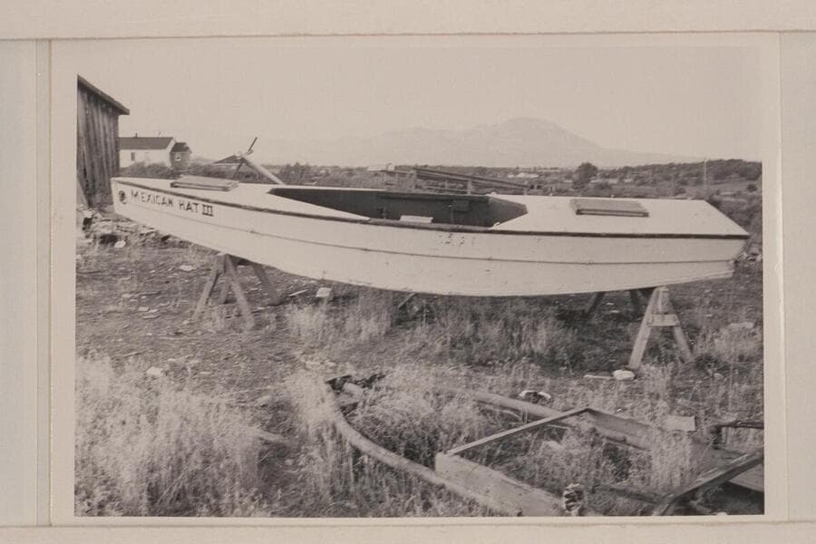 "Mexican Hat III"; Nevills' type skiff built by Mexican Hat Expeditions in 1950 and put into service that year in a run through Grand Canyon
