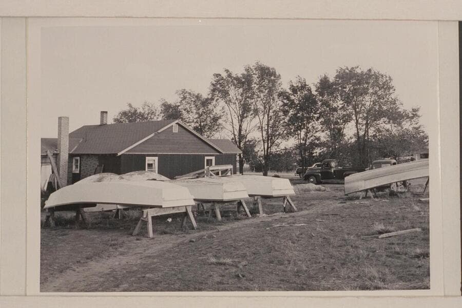 San Juan punts of the Mexican Hat Expeditions at Blanding, Utah. The punt in the foreground has a covering of glass fabric