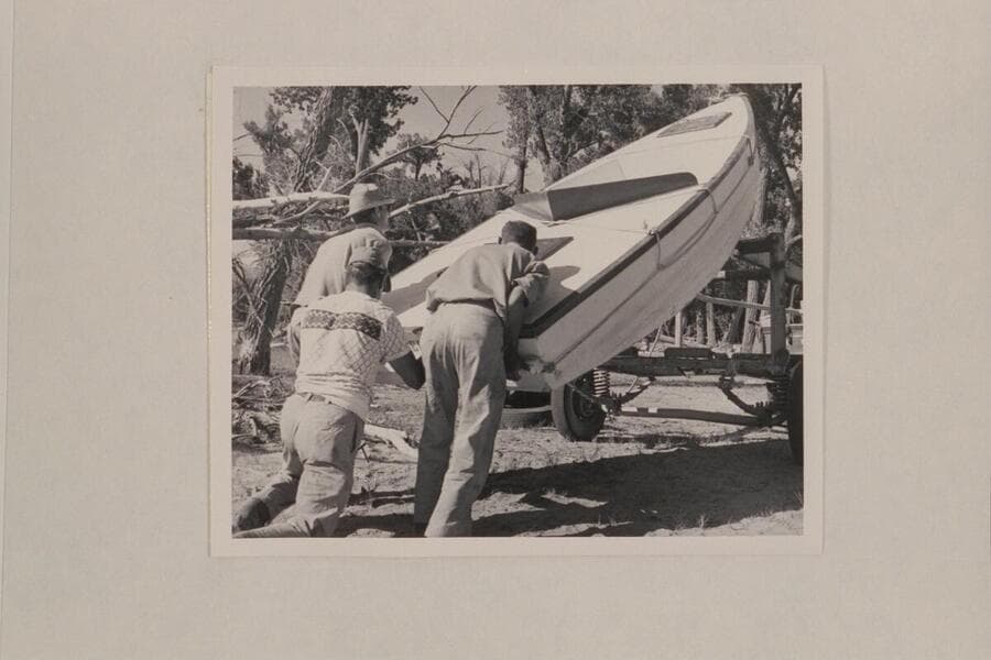 Margaret Marston and Joe Desloge watch Lug Larsen; Carrs Landing, Brown's Hole, Green River
