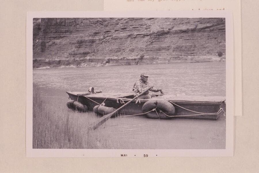 "GEM"; Moulty Fulmer's plywood boat which traversed the Grand Canyon in 1955