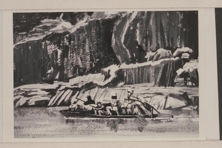 Ashley party (using hidden outboard) painting in Red Canyon Visitor's Center; Ashley National Forest