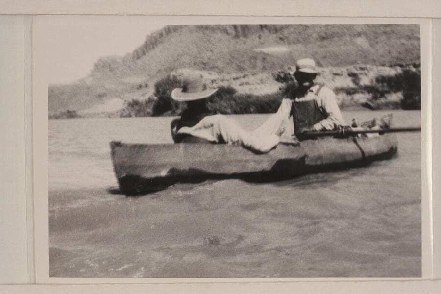 George C. Fraser and Bert Loper in one of Dave Rust's boats during Glen Canyon traverse