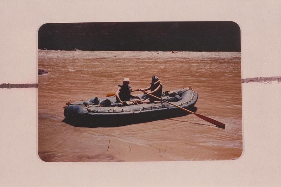 Elgin Pierce and Georgie White waiting at Lava Falls with their neoprene raft