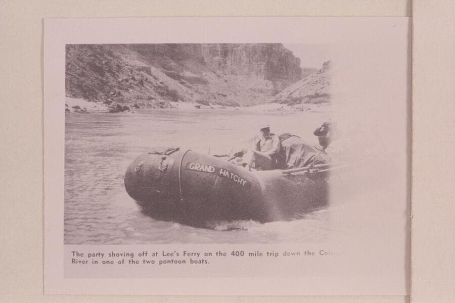 The outboard powered boloneys used by Toll and Dines in a traverse of Grand Canyon. Paria Riffle