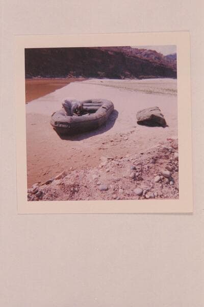 Harry Aleson (near) and Harry Pete Sparkes, Jr., at Green River, Wyoming. The neoprene boats are the 10-man Navy craft