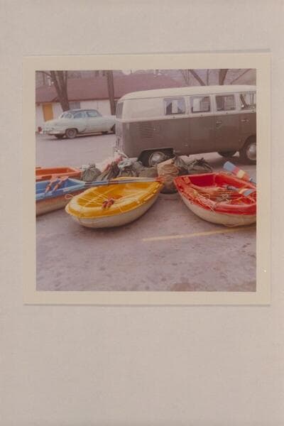 Sportyaks and gear unloaded from Volkswagon prior to Cataract Canyon transit. Moab, Utah