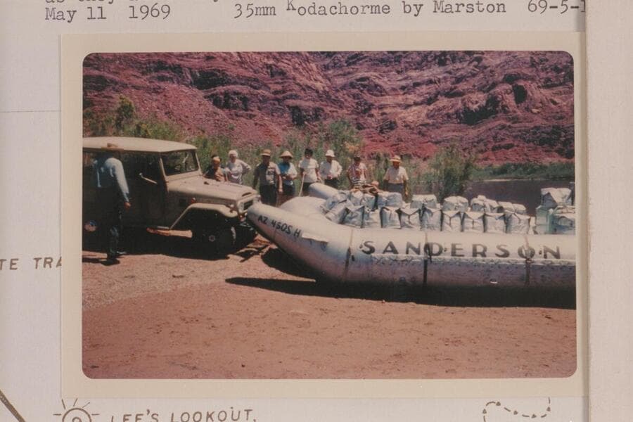 The crowded loading of gear in the Sanderson boloneys as they are ready for launching. Lees Ferry