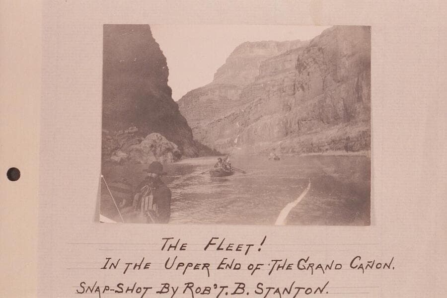 "The Fleet! In the Upper End of the Grand Canon. Snap-Shot by Robt. B. Stanton. From Boat No. 1, 1890