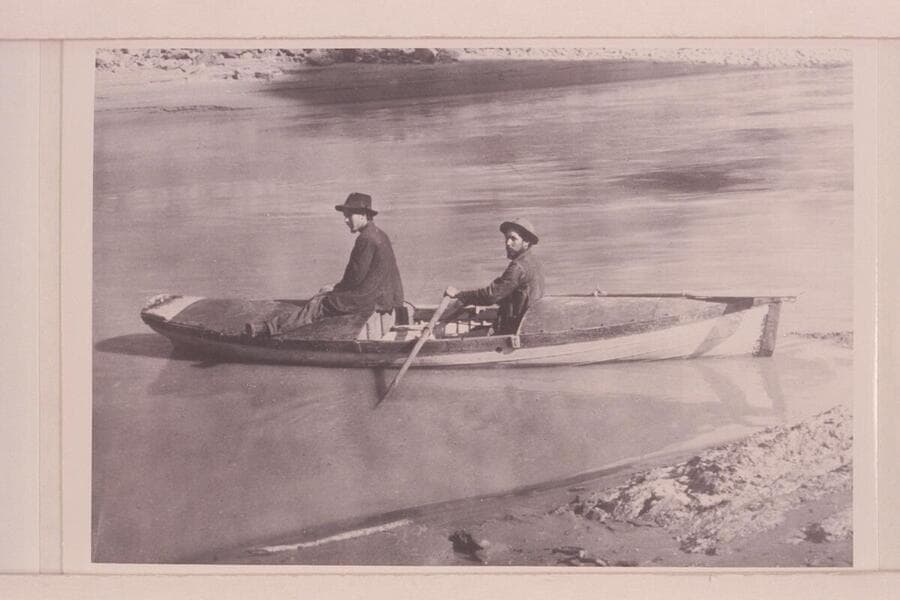 Charles Silver Russell at the oars of the "Utah." Pipe Creek in the Grand Canyon