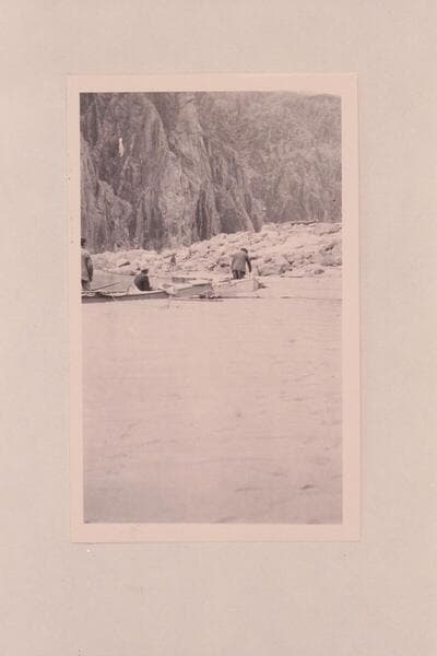 Nathan Galloway and his boat at the mouth of Bright Angel Creek- Galloway-Stone voyage of 1909