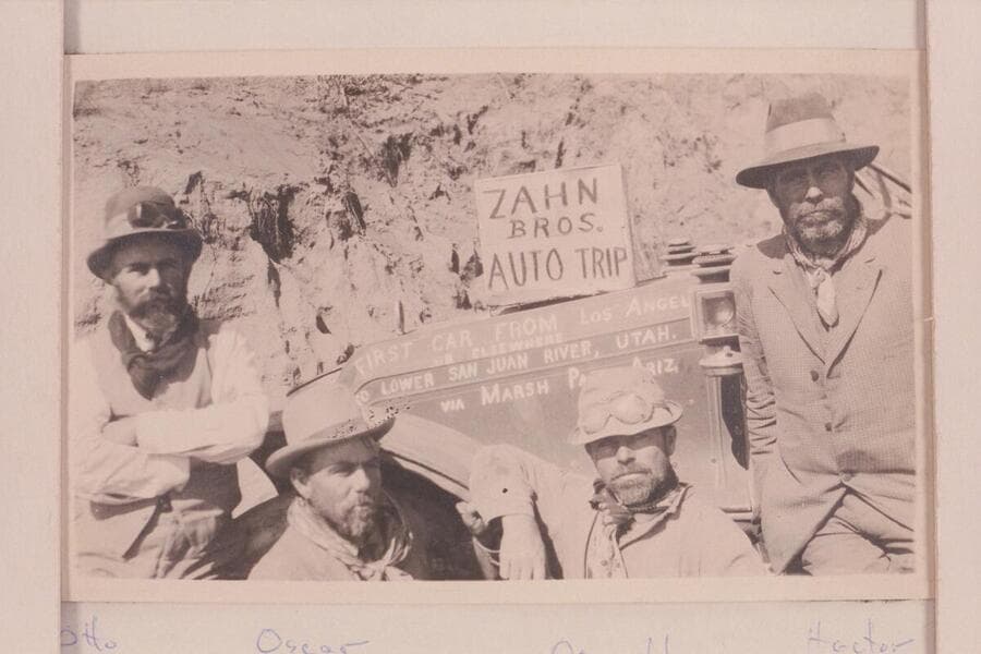 "Oscar Zahn's Palace." The Zahn party and their Franklin car en route from Kayenta to the Zahn Mine on the San Juan River