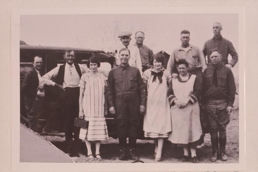 The party of Governor Dern was en route to Hite and stopped at Hanksville where they were photographed with some of the town folk
