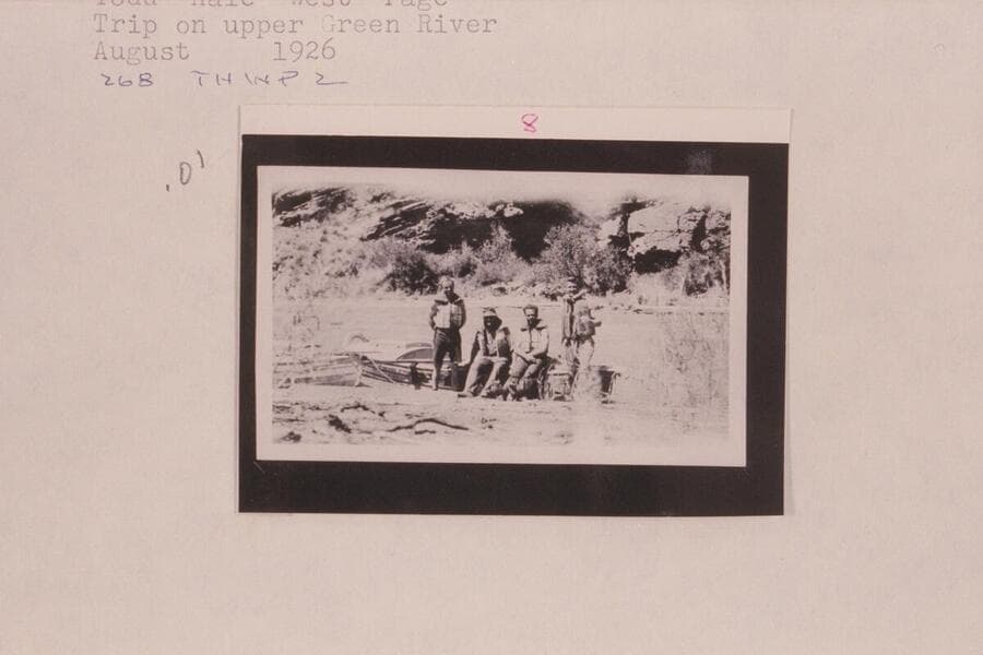 Page-West crew of trip on upper Green River. Hale, Page, West, Blake, Todd
