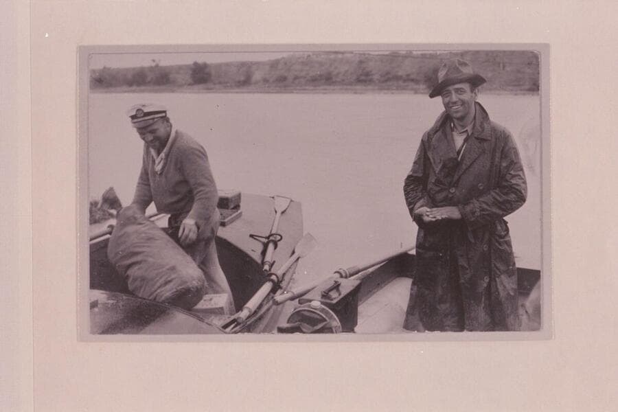 Buzz Holmstrom and Amos Burg at Green River, Wyoming, prior to departure on Green and Colorado River traverse in 1938