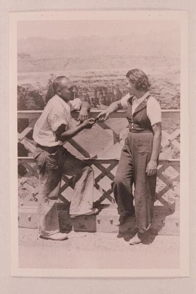Lois Jotter at end of Grand Canyon traverse. Lois Jotter is now Mrs. Victor Cutter (1953)