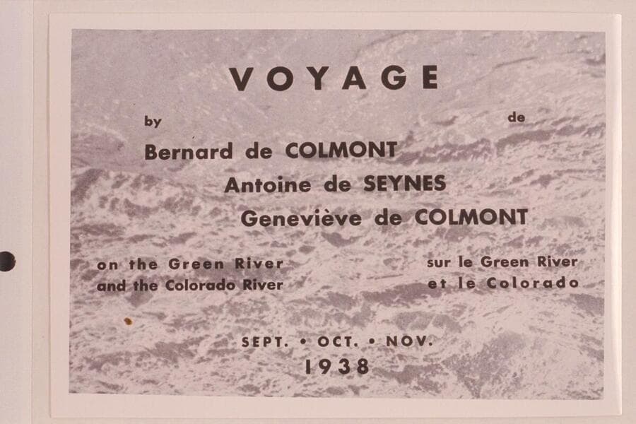 French trio near end of trip. The trio traveled in kayaks from Green River to Lees Ferry. Copied from album sent to friends in the United States