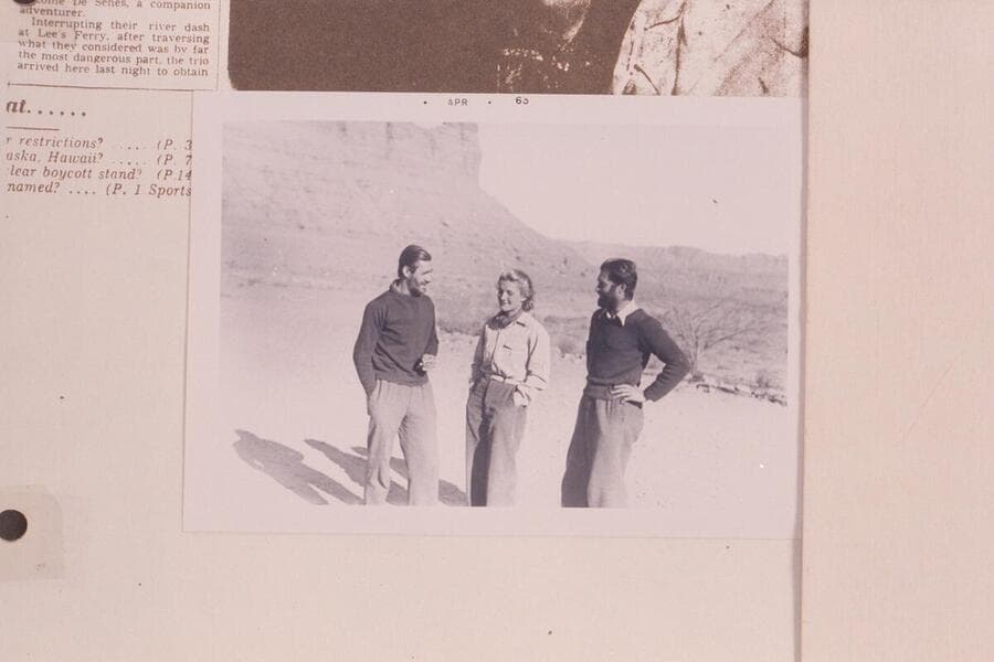 The French Trio at Marble Canyon Lodge when they were leaving the river: Bernard and Genevieve De Colmont and Antoine De Seynes