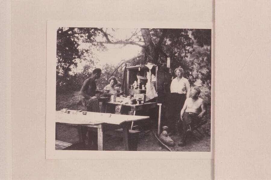 Nevills party at the cave above Rainbow Bridge: Nevills, Edna P. Heringer and Mr. and Mrs. Trask. Pres Walker was also a member of the party