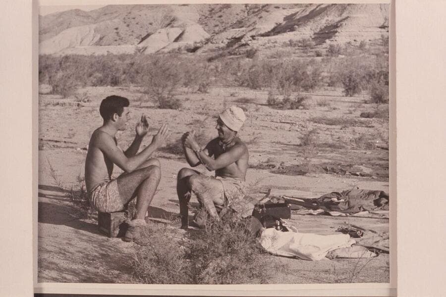 Garth Marston takes a lesson in the Eskimo Dance from Al Milotte; Pierces Ferry