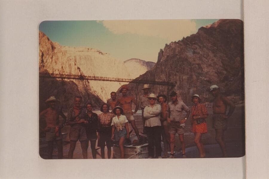 The Nevills 1947 party which made the run from Lees Ferry to Bright Angel Creek in July. Posed at the beach at Bright Angel Creek