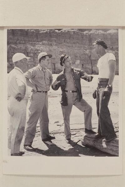 The crew of the "Boo" at Paria Riffle. Left to right: Guy Forcier; Joe Desloge; Joe Desloge; Frank Poettgen