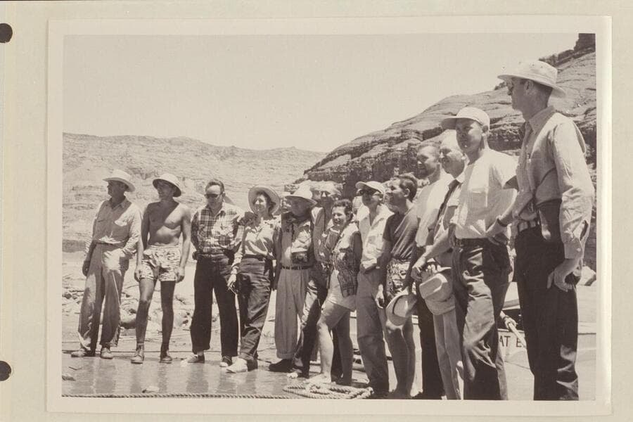 Wright-Rigg party lined up at Paria Riffle for pictures before departure