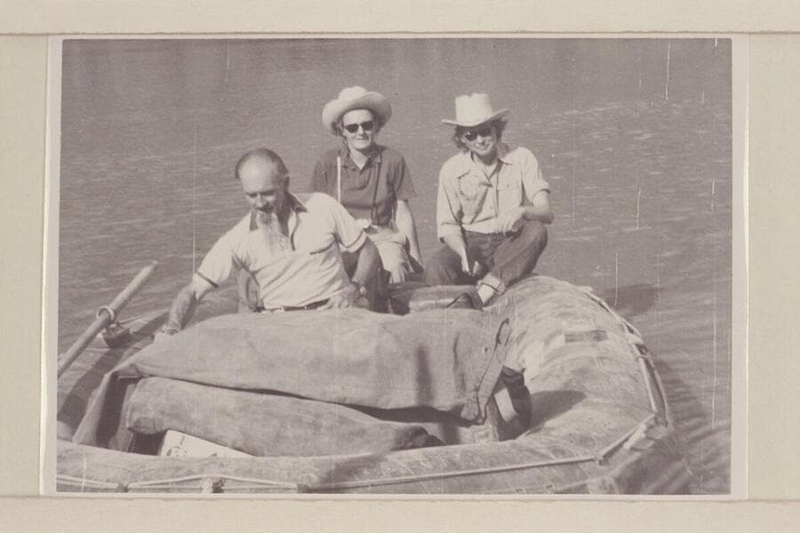 Harry Aleson; Nancy Gilmer; Ynez Haase. At Hite prior to start of Glen Canyon trip