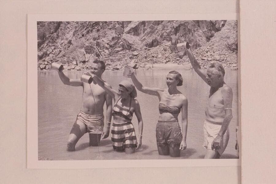 Staveley's outfit at Lees Ferry; left to right: Eiseman, Jones, Staveley, unknown boatman for Georgie