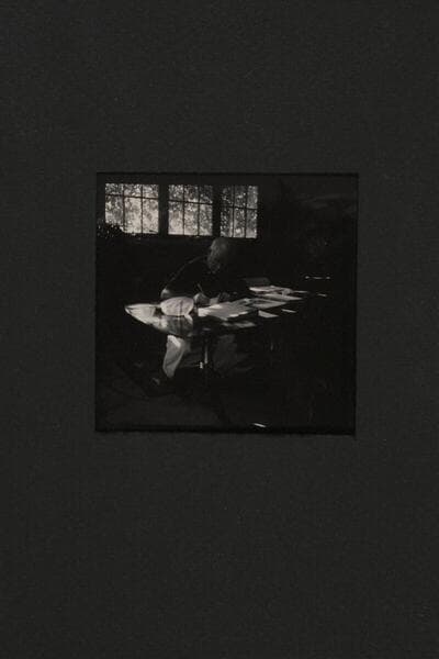 Dock Marston writes the notes of the trip near Navajo Mountain; dining room of Navajo Mountain Trading Post