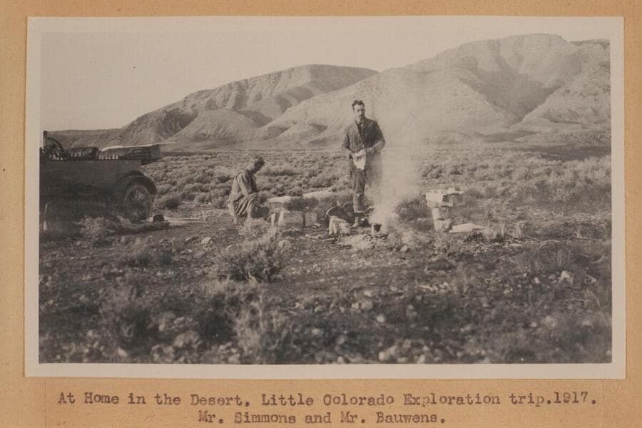 "At Home in the Desert. Little Colorado Exploration trip, 1917. Mr. Simmons and Mr. Bauwens."