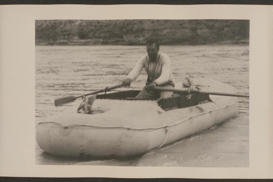 Amos Burg in "Charlie." Green River, Wyoming. Raining