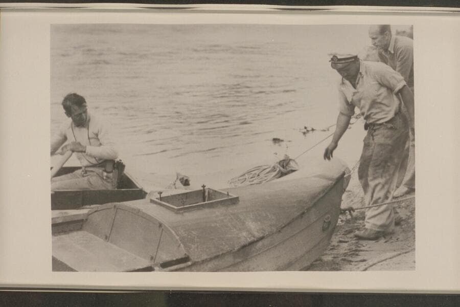 Left to right: Phil Lundstrom; Buzz Holmstrom; Amos Burg. Green River, Wyoming