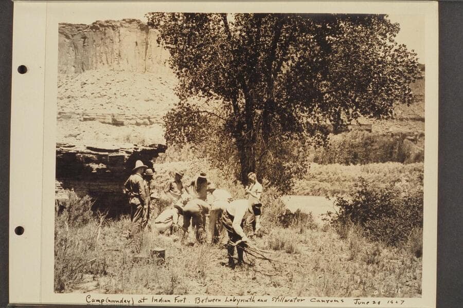 Camp (noonday) at Indian Fort. Between Labyrinth and Stillwater Canyons, June 29, 1927