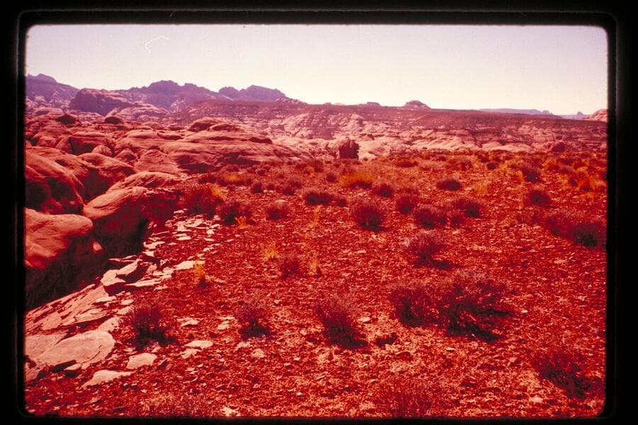 6069 on skyline from top of flat mesa north of trail, north of Cha Butte